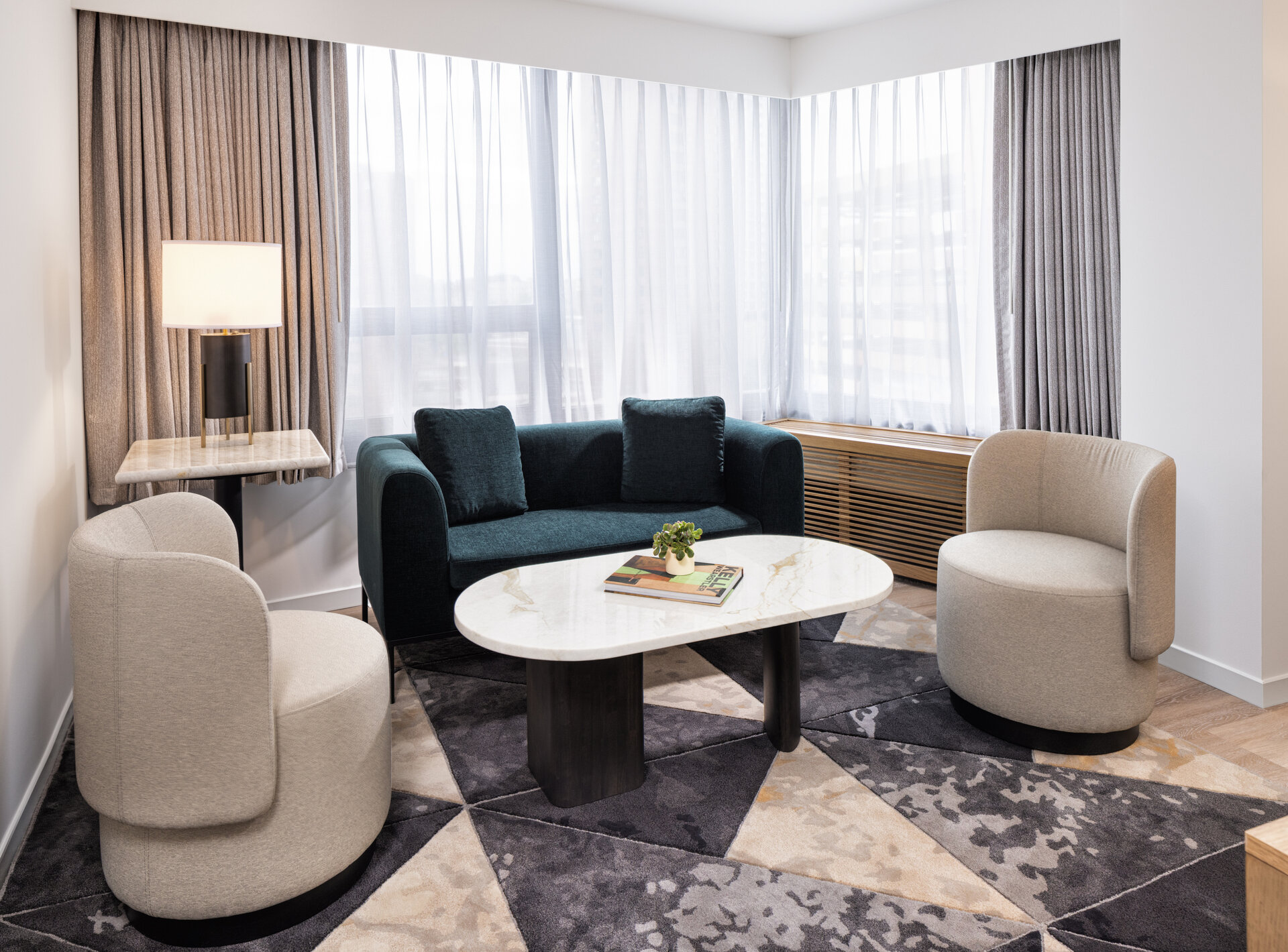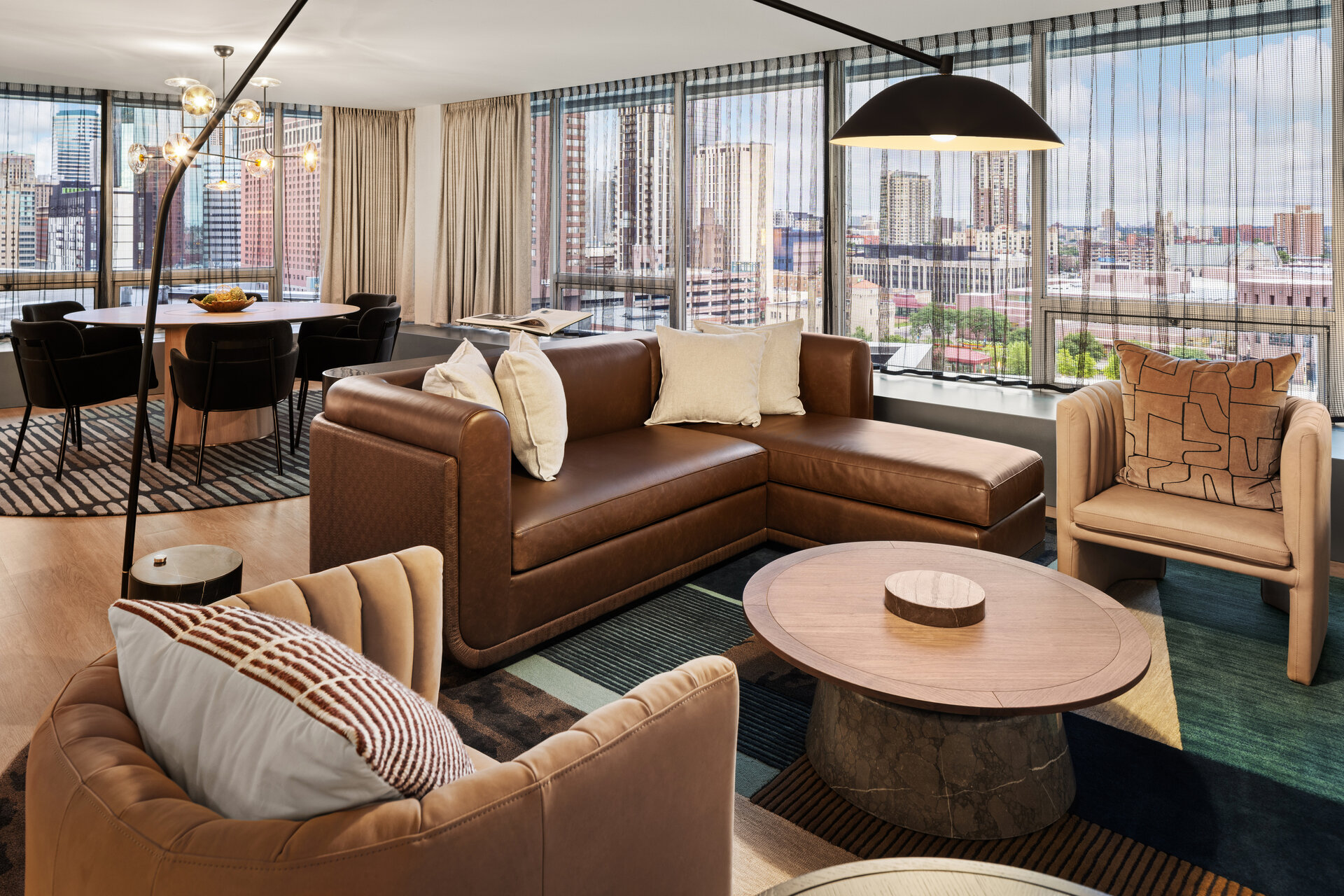 Experience the luxurious presidential suite offering stunning panoramic views, modern furnishings, and bespoke amenities.
